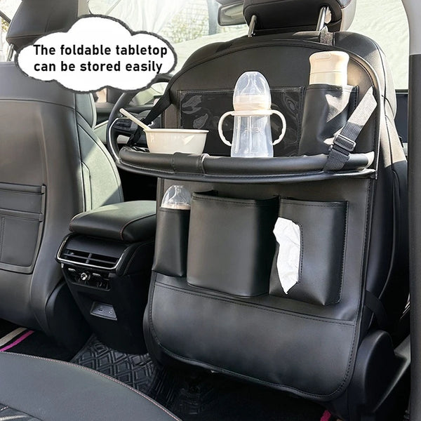 Unlike others, this organizer blends a folding table, tissue box, trash bag and cup holder in one slim leather-style pouch. It looks tidy, installs quickly, and keeps essentials accessible during every drive.